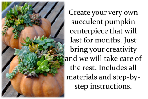 The Make-N-Take Your Own Succulent Pumpkin event starts at 2 p.m. and costs $15.