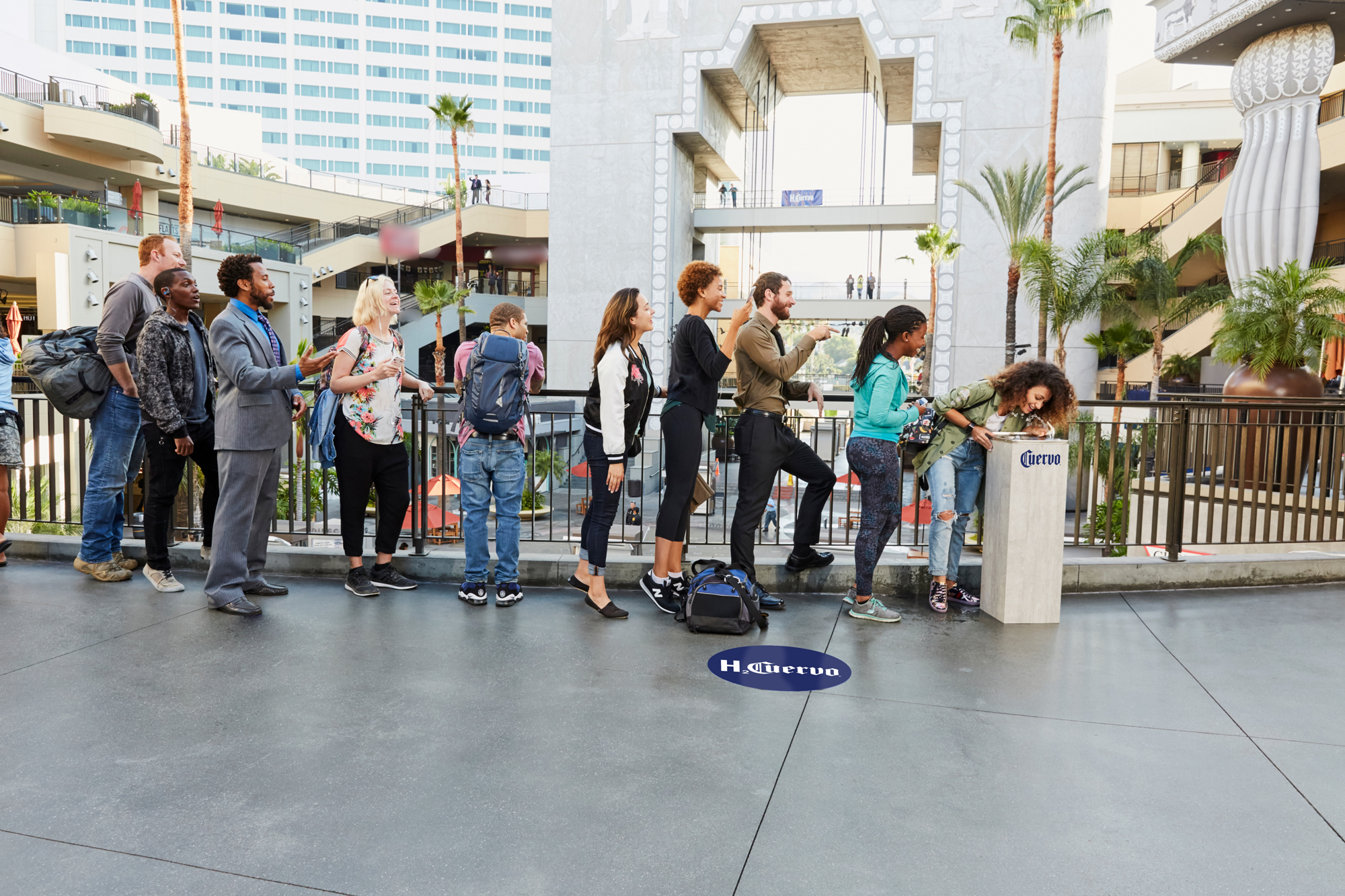Jose Cuervo Tequila is taking National Tequila Day (and Monday) by the reins with their tequila drinking fountain at the Hollywood and Highland Center off Hollywood Boulevard. Cuervo is giving the gift of free chilled tequila to of-age passerbys, to help fight those Monday blues.
