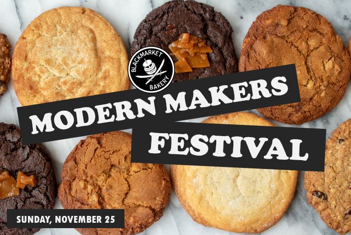 Indulge in all things sweet & savory from Blackmarket Bakery on Sunday, November 25 at the 11th annual Patchwork Show Modern Makers Festival in downtown Santa Ana. From 11:00 a.m. to 5:00 p.m., the popular bakery will offer show attendees a variety of goodies, including their classic shortbread cookies (of flavored + decorated variety), nostalgic two-tone chocolate chip and snickerdoodle drop cookies, and flourless almond brownies!