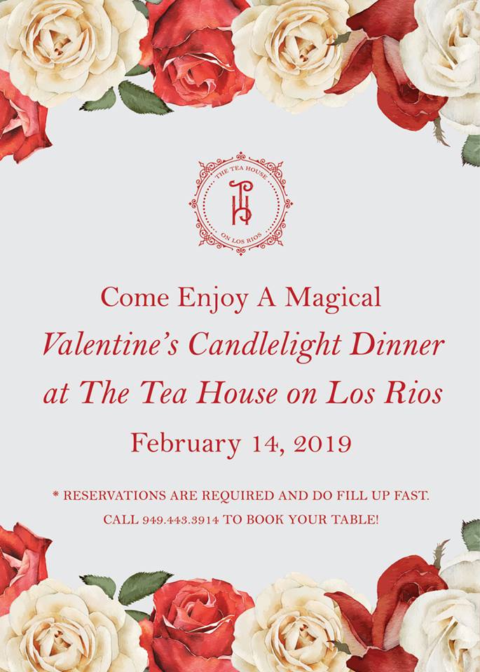 Back by popular demand, The Tea House on Los Rios will be hosting a special candlelit Valentine’s Dinner on February 14th!