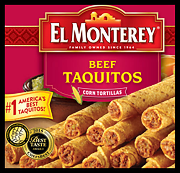 El Monterey Chicken and Cheese Flour Taquitos El Monterey Beef and Cheese Flour Taquitos El Monterey Beef Corn Taquitos El Monterey Chicken Corn Taquitos El Monterey Nacho Cheese and Beef Extra Crunchy Mini Chimis
